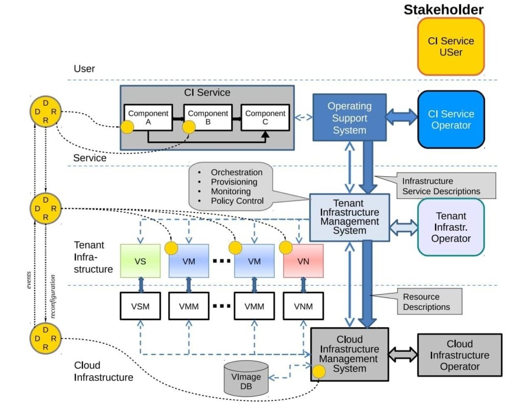 The architecture operates in layers: